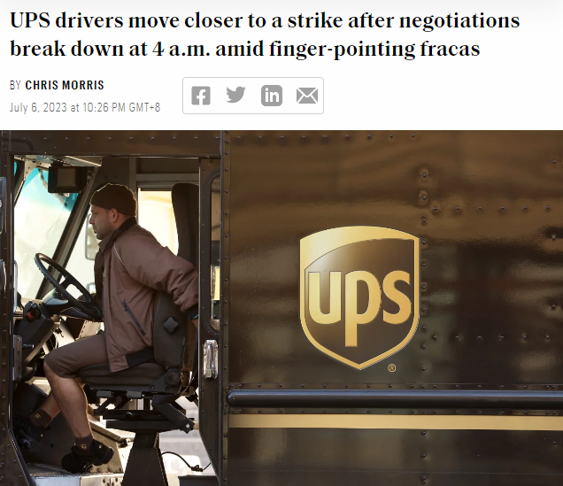 据报道,随着UPS和代表该公司卡车司机协会Teamsters之间的合同谈判破裂,八月份可能会爆发罢工。一场严重罢工的威胁正变得越来越大。